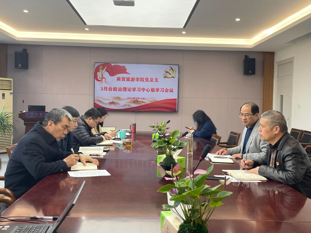 3月15日,商贸旅游学院党总支在8318会议室召开3月理论中心组学习会议。商贸旅游学院班子成员、党总支委员、党支部书记参会。会议由周佳良主持。