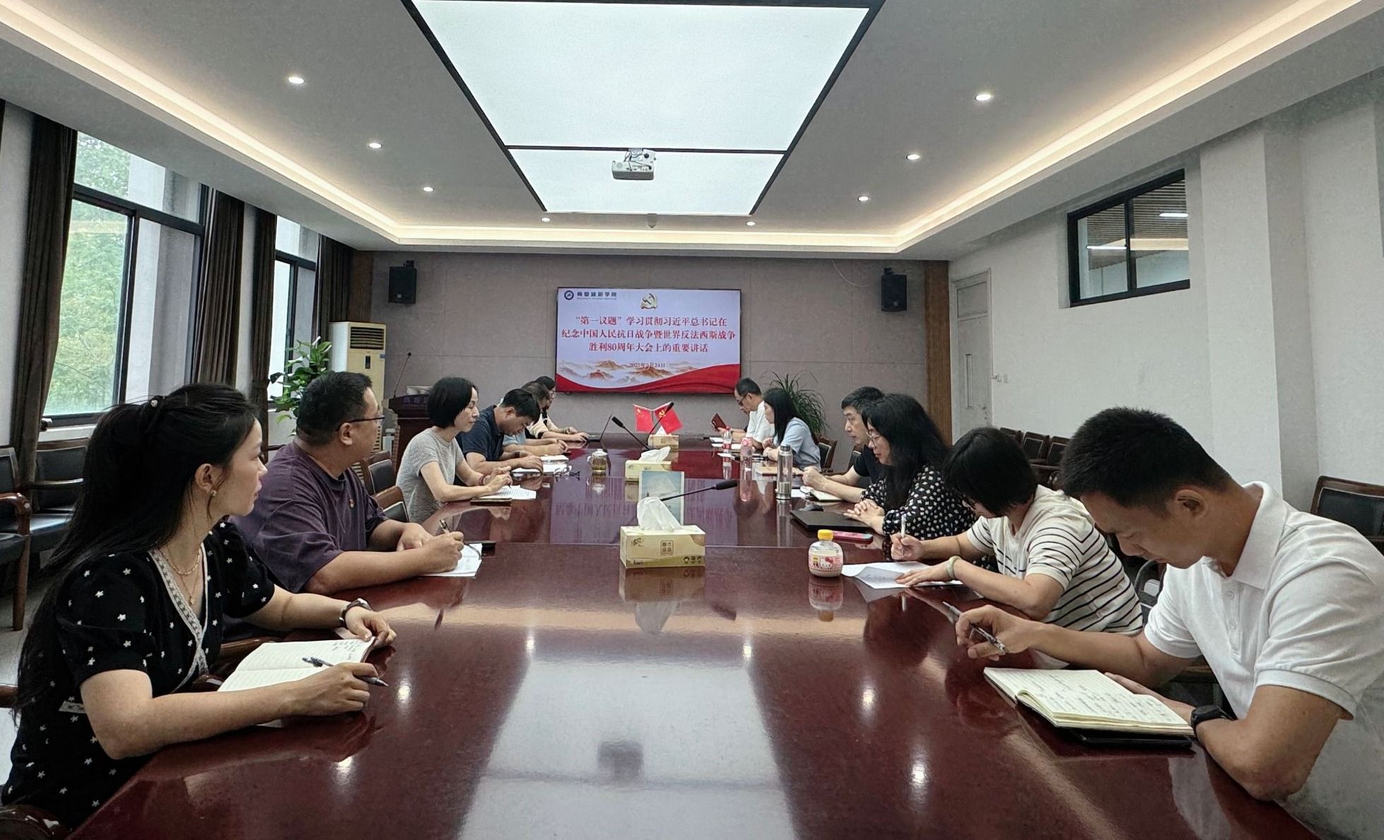 最后,分院党总支书记、院长张赵根作总结发言。他强调,要深入贯彻落实习近平总书记的重要论述精神,深刻领会伟大抗战精神的历史意义和时代价值,从中汲取奋进力量;要坚决抵制历史虚无主义等错误思潮,在广大师生中牢固树立和践行唯物史观,营造风清气正、安全稳定的校园环境;要以更高标准、更实举措推动党的作风建设走向纵深,持续巩固拓展中央八项规定精神学习教育成果,完善常态化长效化机制,为分院和学校高质量发展提供坚强政治保障。