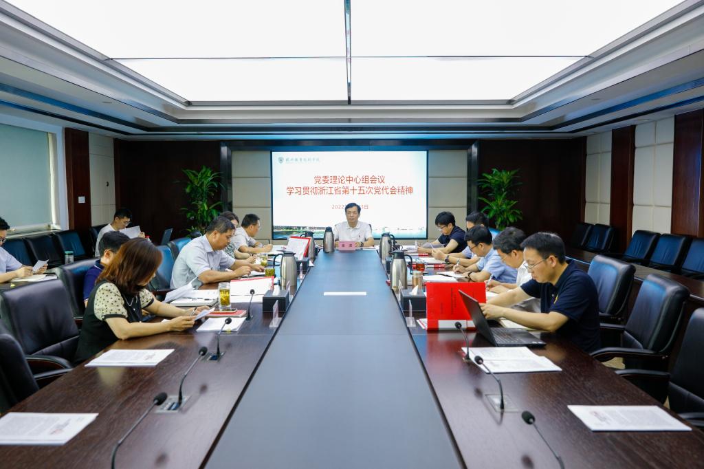 6月23日上午,杭职院党委理论学习中心组举行浙江省第十五次党代会精神学习会。校党委书记金波主持并学习传达大会精神,学校党政领导班子成员,党政办、宣传部负责人参加会议。