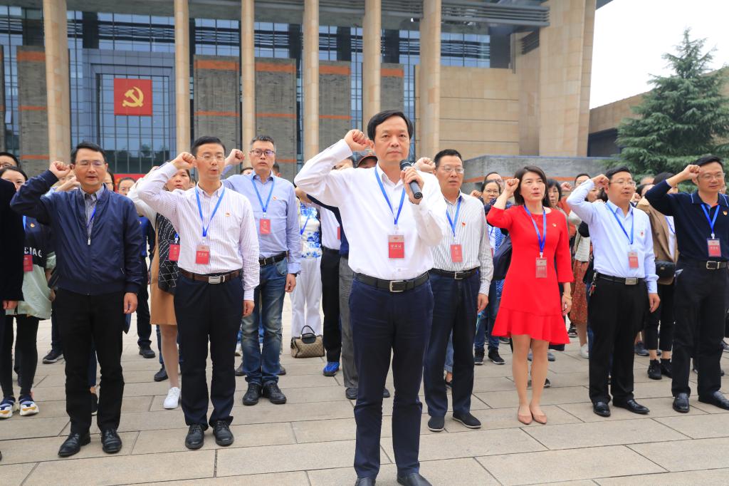 最后,全体党员面向党旗庄严宣誓,重温了入党誓词。