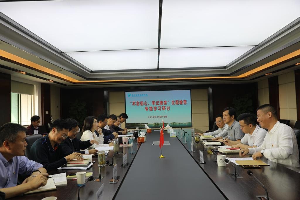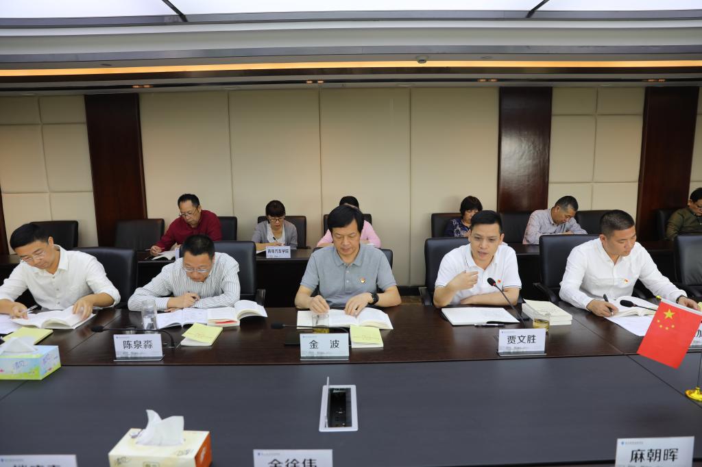 10月10日上午,“不忘初心、牢记使命”主题教育专题学习研讨在行政楼第一会议室召开。学校党委班子成员金波、贾文胜、陈泉淼、陈加明、沈威、金徐伟、楼晓春、麻朝辉、程利群,副校级领导张洪宪,党务部门负责人、党总支书记等参加会议。会议由党委书记金波主持。