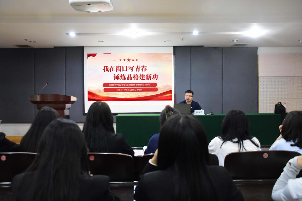 6月7日下午,达利女装学院党总支学生党支部学习贯彻习近平新时代中国特色社会主义思想主题教育专题党课在行政楼117会议室举行。学生党支部书记柳霆钧作题为“我在窗口写青春,锤炼品格建新功”的党课报告。学生党支部全体党员、入党积极分子参加会议。