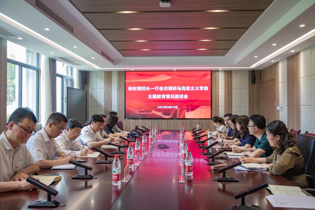为确保学习贯彻习近平新时代中国特色社会主义思想主题教育工作高标准高质量开展,6月16日下午,校党委副书记、校长徐时清,校党委副书记陈泉淼,党委委员、组织部部长麻朝晖一行赴马克思主义学院、达利女装学院调研指导主题教育开展推进情况。