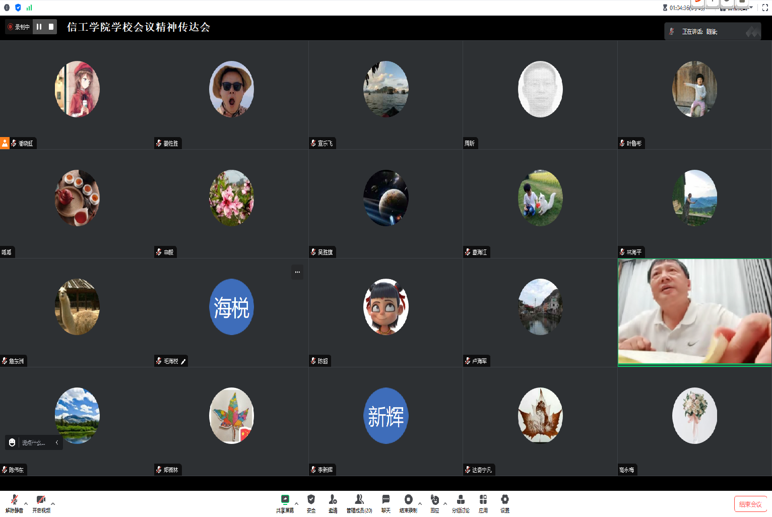 8月21日晚,信息工程学院召开线上会议,传达学校党委理论学习中心组学习(扩大)会议精神。分院领导班子、党总支委员、党支部书记、三办一室工团学负责人、各专业负责人、学校青英计划入选人、外挂干部等参加会议。会议由党总支书记谢川主持。