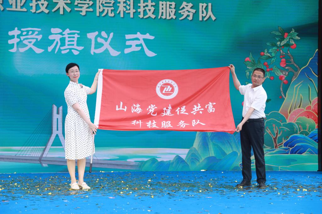 随后,教工第一党支部与紫金街道杨坑村党支部签订“山海党建协作支部”共建协议,在未来,双方将通过政治理论联学、优势资源联享、实践活动联办、党员队伍联建、中心工作联动、技能人才联育、作风建设联抓、党员困难联帮八联驱动,形成“战略统筹、资源共享、优势互补、协同创新、发展共赢”的党建工作新格局。最后,在活动现场,紫金街道党工委书记李勇军为动漫游戏学院“山海党建促共富”科技服务队授旗,同时动漫游戏学院还在紫金街道杨坑村设立了科技服务小院,通过社会实践、专业实习等平台让服务团队在村里常驻,为杨坑村村民提供零距离、零时差、零门槛、零费用的科技志愿服务。