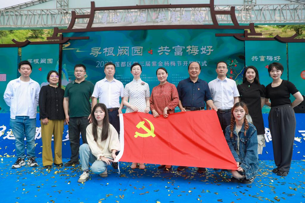 春耕夏耘,当田间地头正蓄力转入下一季的繁忙,一场新时代的学习贯彻行动,也在热闹的紫金街道杨梅山林拉开帷幕,在主题教育的号角声中,“山海党建”再次掀起新热潮。5月27日,莲都区“寻根阙园 共富梅好”第三届紫金杨梅节开摘仪式启动,动漫游戏学院党总支书记沈音乐、教工第一党支部吕伟德教授、数媒专业教师赵如欣、党总支组织委员俞旭以及学生代表一行前往赴约,以“梅”为媒,以节会友,搭沟通桥梁,缔友谊纽带,深山海党建,兴共富之路。