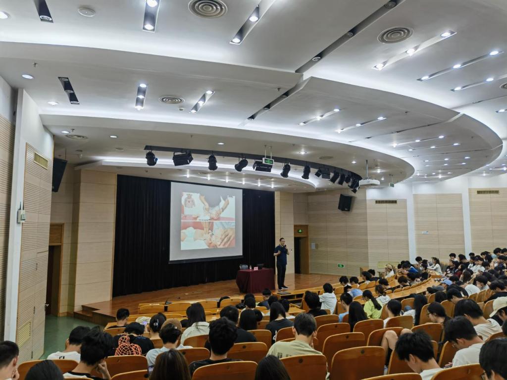本次培训会,赵雪从热射病防治、心肺复苏技巧、人工呼吸注意事项、海姆立克急救和电击伤救治等方面进行详细讲授。一方面,他着重强调急救前要确保现场是安全的,只有发现并避开对于你、伤病员及附近的所有其他人员存在的任何危险,才能更好地开展急救。另一方面,他用专业且风趣的语言讲授了心肺复苏、海姆立克等急救方法的理论知识并对整个流程及注意事项做详细的讲解。最后,他赞许了杭职学生全面、准确的急救意识和知识积淀并对亚运会亚(残)运会开闭幕式群演的精彩表现表达了期许和祝愿。
