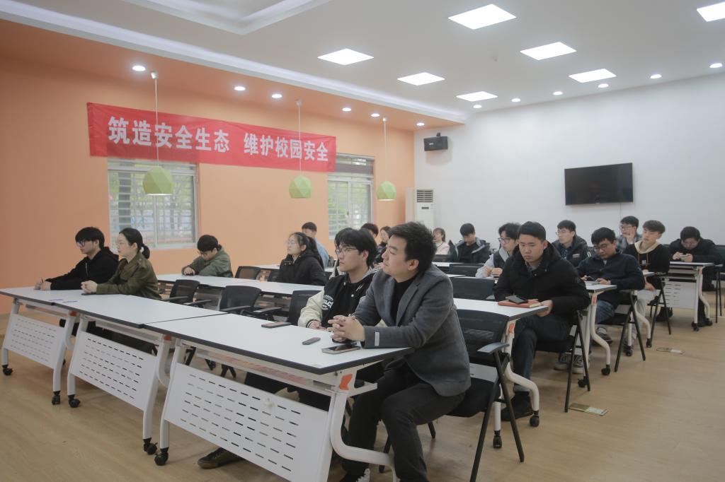 为增强我校创业园区企业安全意识,提升园区人员安全风险防范、识别和自我保护能力,切实保障园区人身财产安全,3月22日下午,创业学院联合学校保卫处邀请下沙白杨派出所警官在我校创业园区1124室会议室举行了 “筑造安全生态,维护校园安全”主题教育讲座。保卫处黄伟斌、创业学院副院长李海涛、创业园区企业负责人及园区管理人员参加了讲座,讲座由李海涛主持。