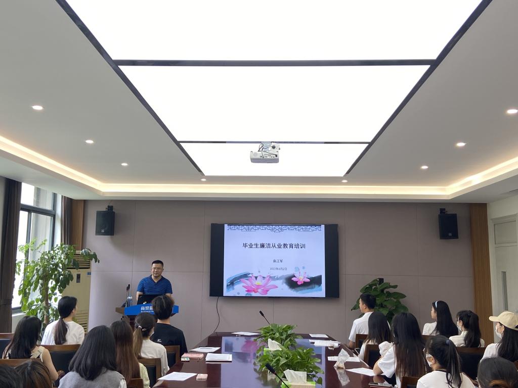 为进一步提升毕业生党员的党性修养,引导毕业生党员廉洁自律做表率,助力毕业生党员迈好职业生涯第一步,6月2日,商贸旅游学院在8318会议室举办毕业生党员廉洁教育主题党课暨组织关系转接培训,学院党总支纪检委员袁江军、组织员白秀珍、2022届50名左右毕业生党员共同参加了本次活动。