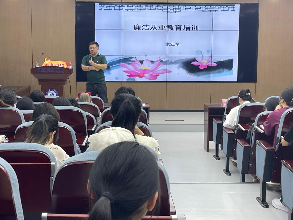为进一步提升毕业生党员的党性修养,增强纪律意识,规矩意识,筑牢廉洁从业思想道德防线,提高大家拒腐防变和自我保护能力,助力毕业生党员迈好职业生涯第一步。6月2日,商贸旅游学院在8306组织开展毕业生党员廉洁教育主题党课暨组织关系转接培训活动,学院党总支纪检委员袁江军、组织员白秀珍、2023届43名毕业生党员共同参加了本次活动。