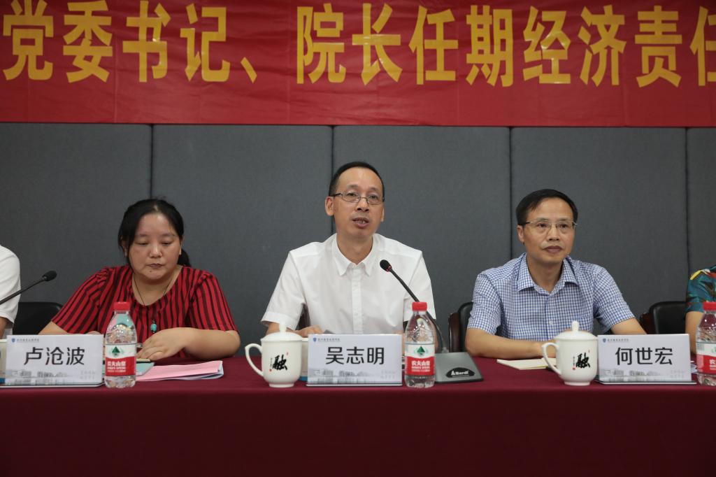 根据审计法有关规定和省委工作安排,9月16日下午,我校党委书记、校长任期经济责任审计进点会在行政楼第三会议室召开。市审计局党组副书记、副局长、巡视员吴志明,省审计厅教科文处处长何世宏,省教育厅审计处四级调研员卢沧波,市审计局科教处处长、审计组组长黄靖及审计组全体成员,学校领导班子全体成员、各职能部门负责人、各二级学院党政负责人等参加会议。会议由黄靖主持。