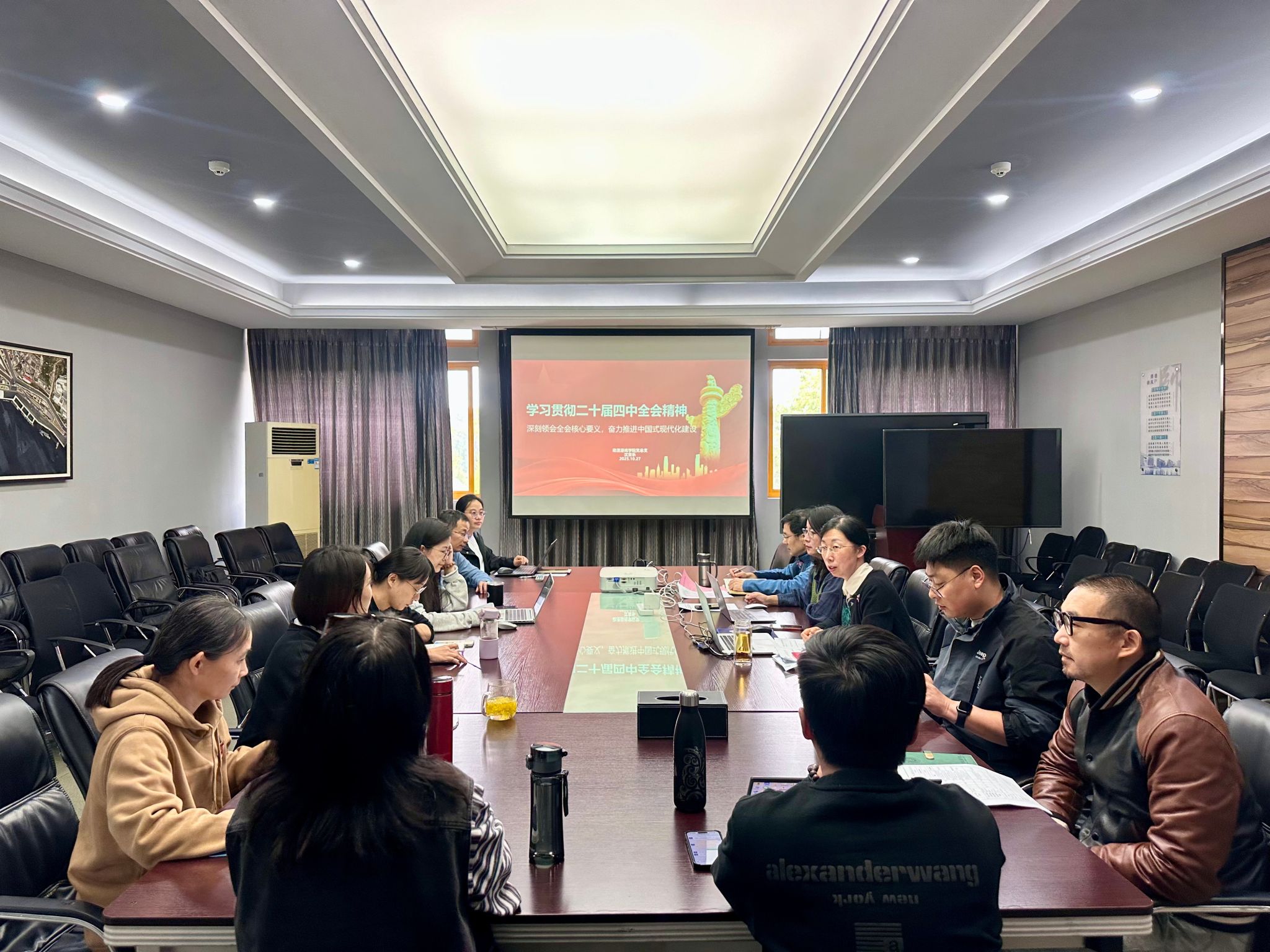 10月27日,杭州动漫游戏学院党总支在307会议室组织开展学习贯彻党的二十届四中全会精神专题党课。本次党课由学院党总支书记沈音乐主讲,党总支委员、各支部书记及学院全体中层干部参加学习。
