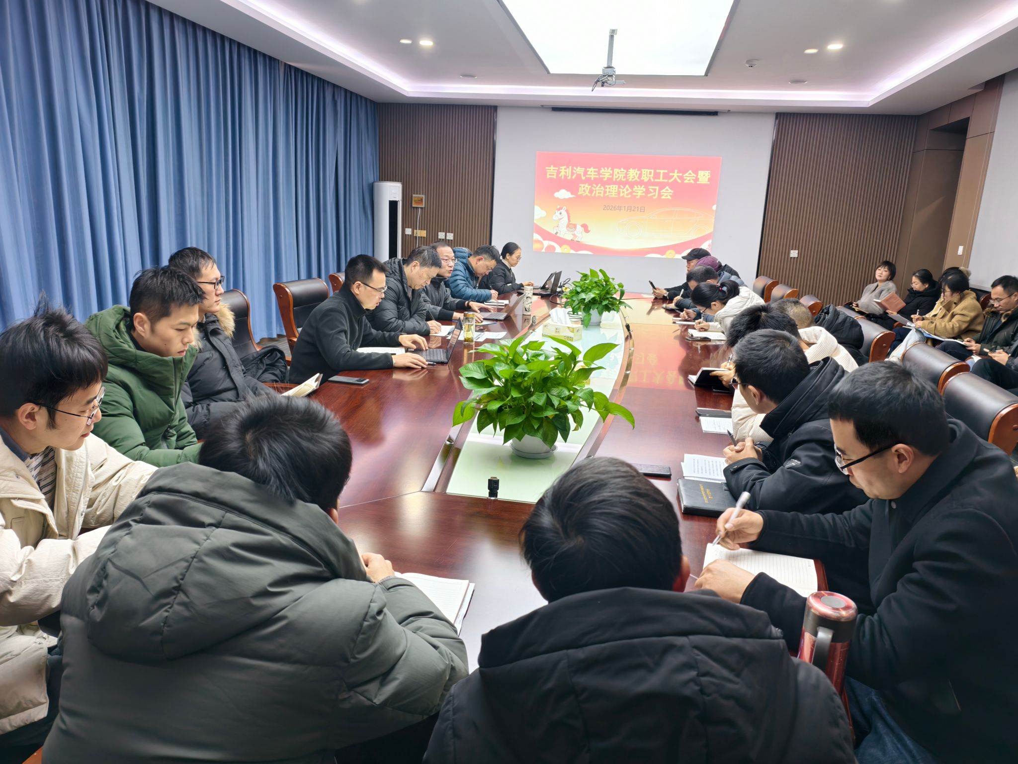 1月21日上午,吉利汽车学院在2409会议室召开期末全体教职工大会暨政治理论学习会,学院党总支书记、院长邵立东、副书记张理剑、副院长林辉及全体教职工参加会议,会议由张理剑主持。