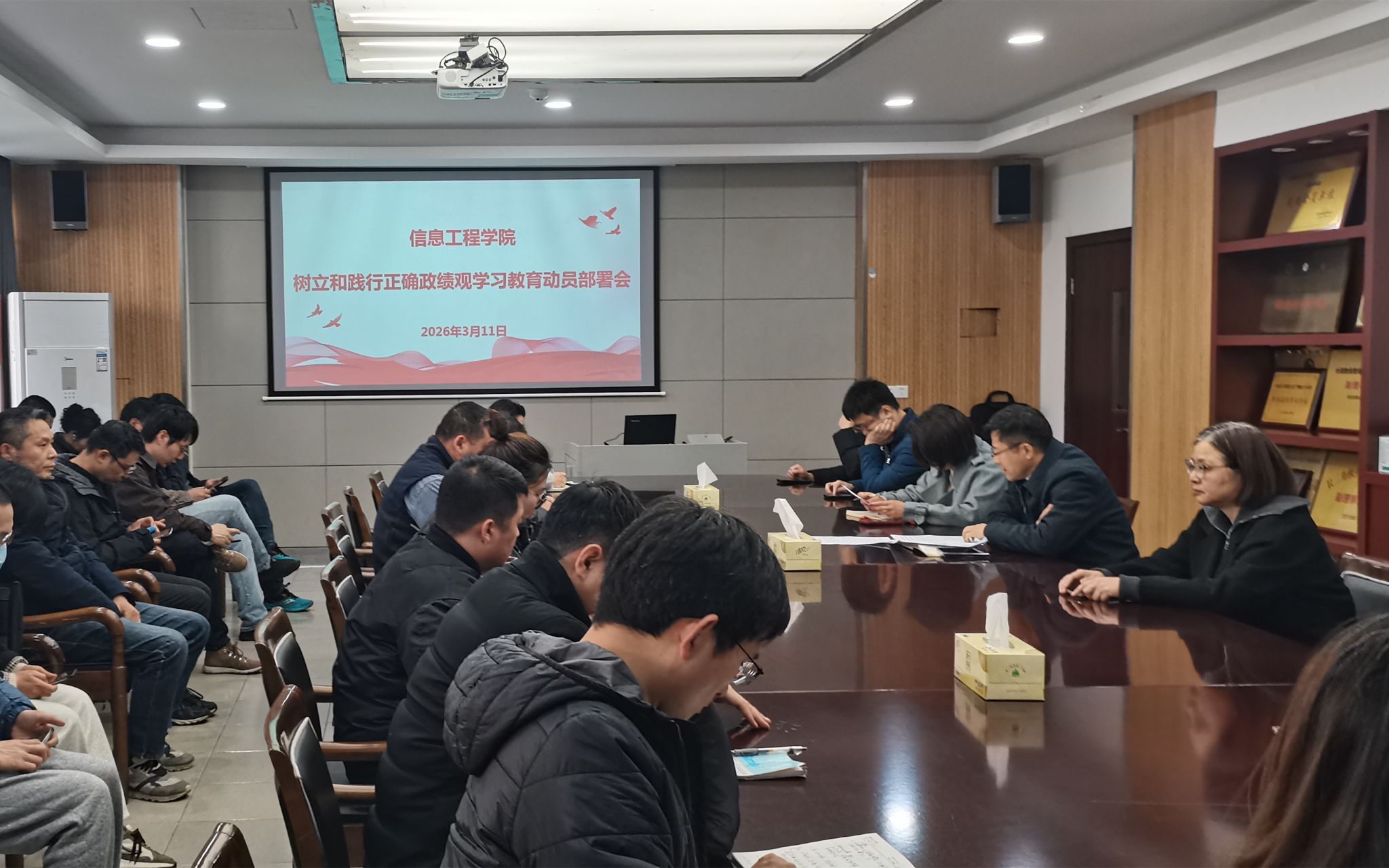 为深入学习贯彻党中央和省委、市委统一部署,认真落实校党委关于树立和践行正确政绩观学习教育的工作要求,3月11日,信息工程学院召开树立和践行正确政绩观学习教育动员部署会。院长、党总支副书记陈云志主持会议,学院全体党员、干部参加会议。