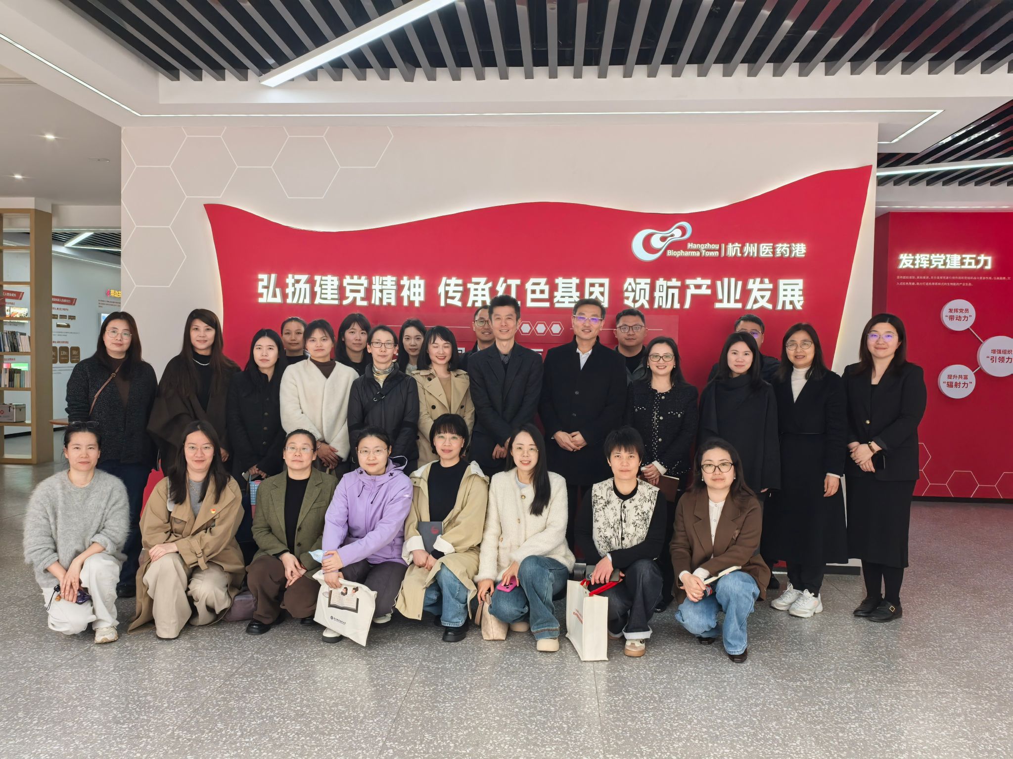 3月26日,“融善工坊”组织员领航工作室组织学员赴杭州医药港开展3月专题研学活动。领航工作室学员通过现场观摩、座谈洽谈、集中领学等形式,深入学习先进党建经验,推动校地企党建联建与产教融合走深走实。生态健康学院院长何艺,校党委组织部副部长贝锐,生态健康学院党总支副书记徐夏欣,生物制药技术专业负责人陈郁参加活动。杭州医药港党工委委员、副主任李翔,产业社区党支部书记、协同治理委员会主任吴菲菲,综合管理部部长邬显达等陪同参观与交流。