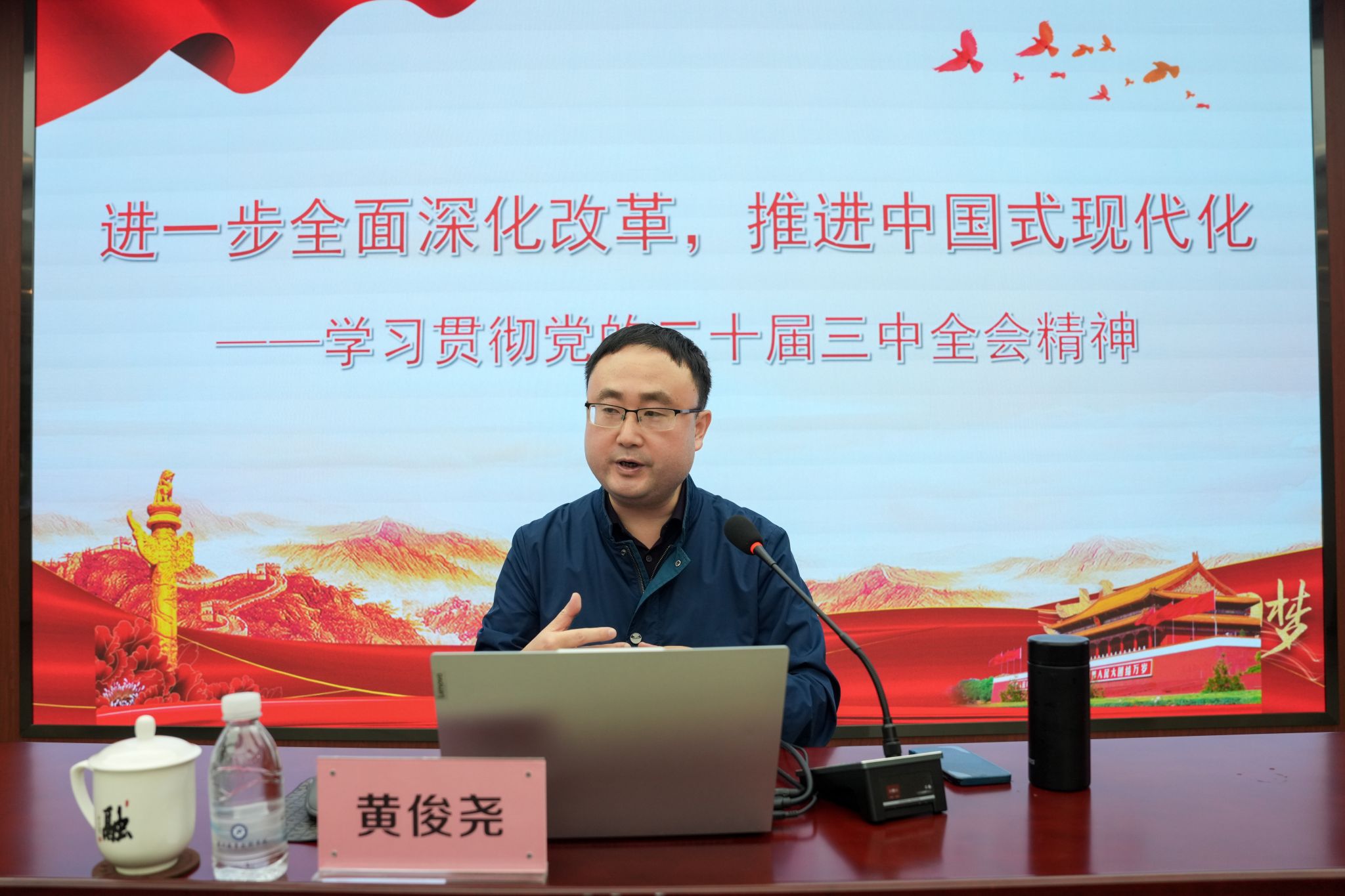 杭州师范大学公共管理学院教授黄俊尧作题为《进一步全面深化改革,推进中国式现代化》的辅导报告,细致解读进一步全面深化改革的指导思想、总目标、重大举措,以及全会关于深化教育综合改革的新部署、新要求,为学校持续深化教育教学改革提供具体指导。