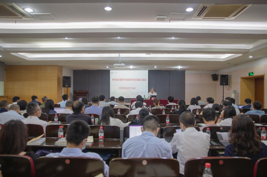 周建松围绕申本创大视阈下的高职学校关键能力建设主题,从职业教育发展时代背景切入,围绕增强党的领导力、教学内涵力、队伍战斗力、服务贡献力、文化引领力、资源整合力等六个方面对学校关键能力建设进行阐述和分析。讲座既有理论高度,又有实践深度,为学校下一步加快推进升本创大提供了很好的启示。