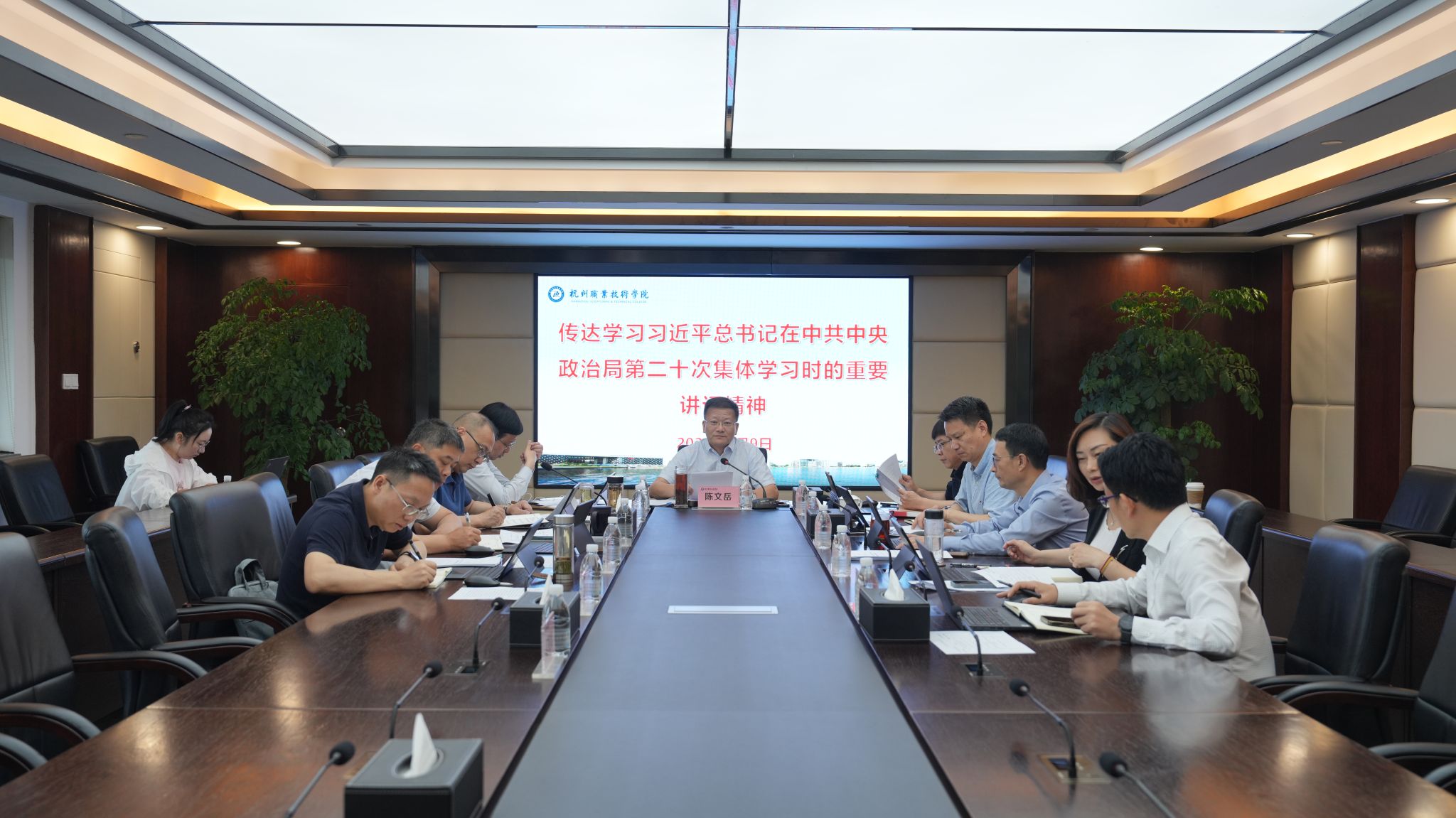 5月9日上午,我校在行政楼528会议室召开党委会“第一议题”学习会,深入学习贯彻习近平总书记在中共中央政治局第二十次集体学习会上和在庆祝中华全国总工会成立100周年暨全国劳动模范和先进工作者表彰大会上的重要讲话精神以及重要文章。校党委书记陈文岳主持会议并讲话。全体校领导班子成员参加。