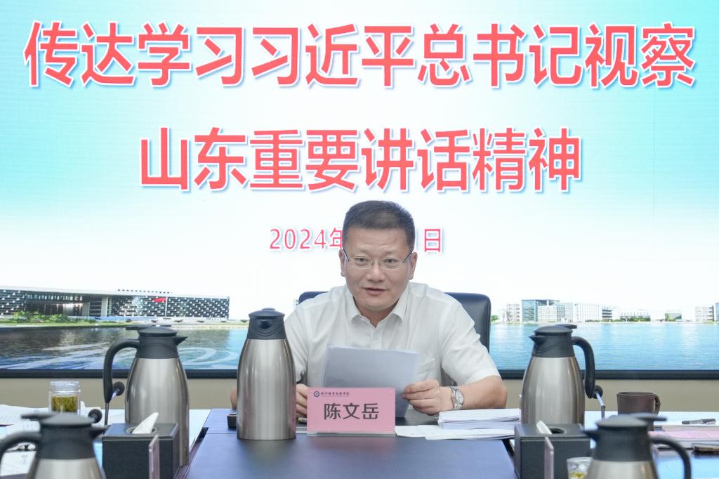 5月31日下午,学校党委会举行“第一议题”学习会,专题传达学习习近平总书记视察山东发表的重要讲话精神和关于“促进高质量充分就业”的重要指示精神,研究部署学校贯彻落实措施。学校党委领导班子成员参会,校党委书记陈文岳主持会议并讲话。