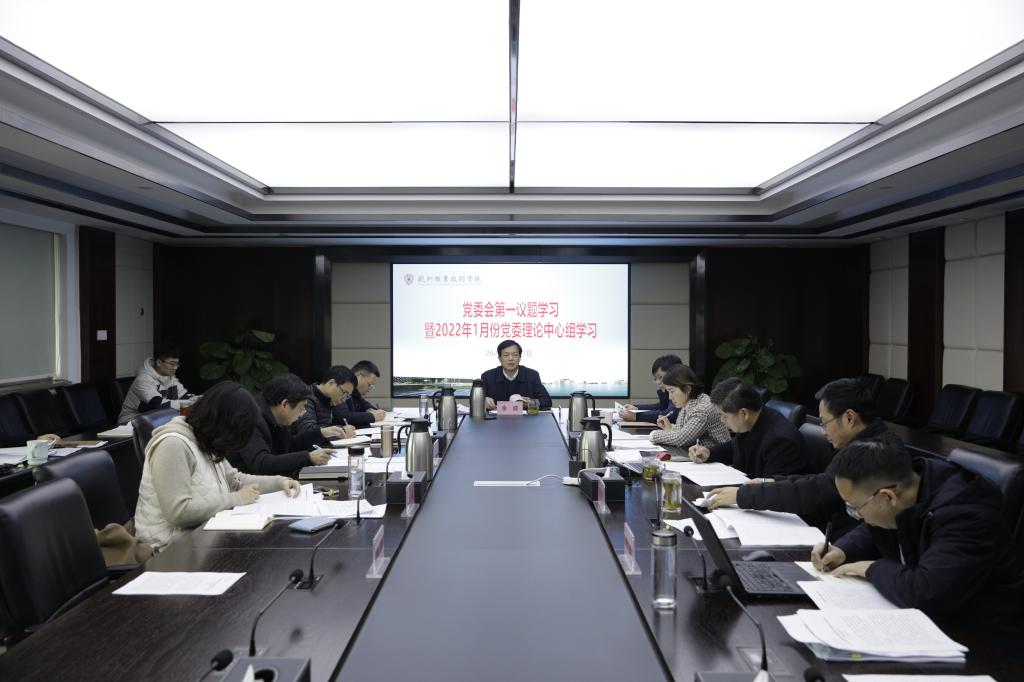 1月17日,杭州职业技术学院召开党委理论学习中心组学习会议,集中学习习近平总书记在省部级主要领导干部学习贯彻党的十九届六中全会精神专题研讨班开班式上的重要讲话精神,学校党委理论学习中心组全体成员参加。会议由校党委书记金波主持。