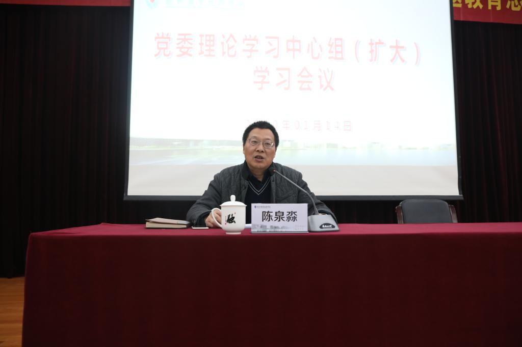 114日下午,我校在行政楼报告厅召开了党委理论学习中心组(扩大)学习会议。学校党政班子成员、全体中层干部、支部书记参加了会议。会议由党委委员、宣传部部长程利群主持。