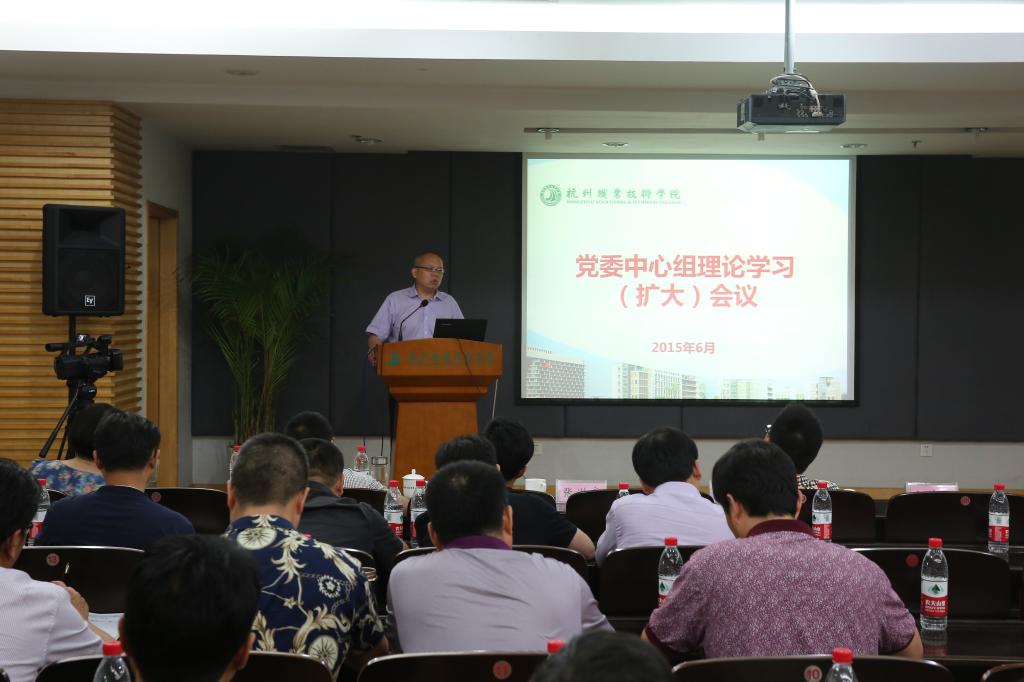 6月23日下午,党委理论学习中心组(扩大)会议在行政楼第三会议室举行,校党政班子成员及全体处级干部出席会议,会议由党委委员、宣传部长金徐伟主持。