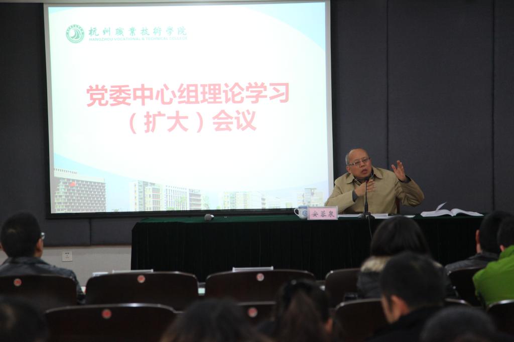 12月4日下午,我校党委中心组理论学习(扩大)会议在行政楼第三会议室举行。党委班子成员以及处级以上领导干部、专业负责人出席会议。会议由党委委员、宣传部部长金徐伟主持。