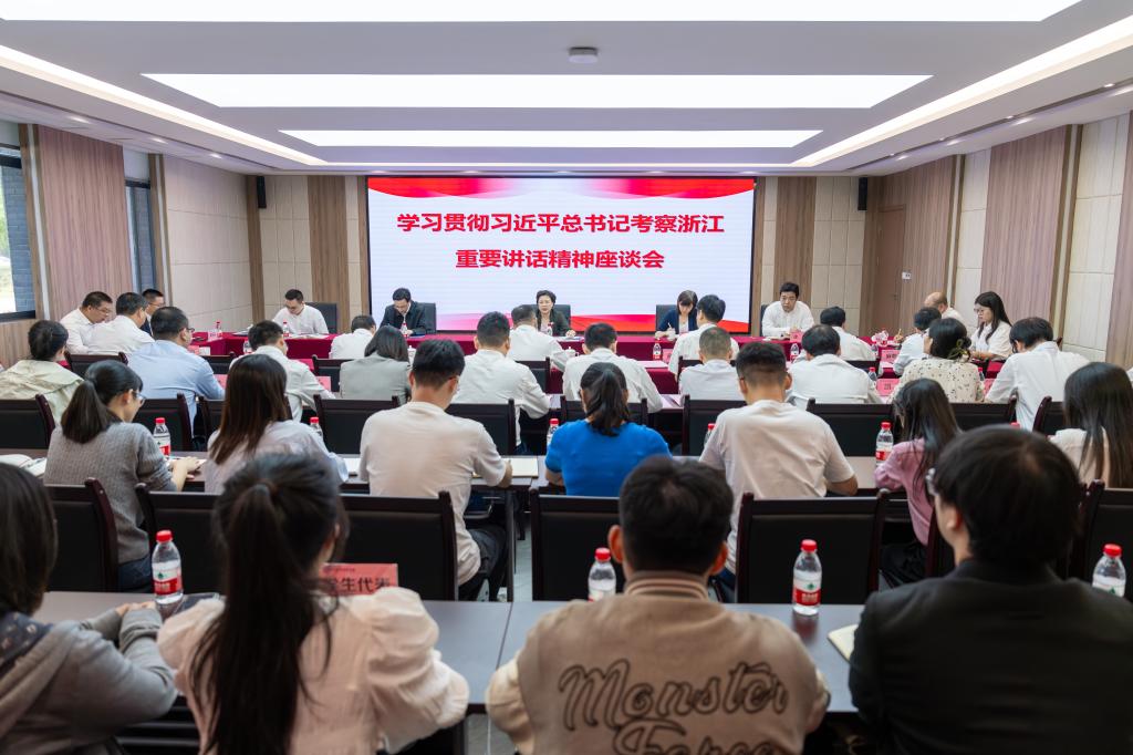 近日,市委常委、组织部部长刘嫔珺来到杭州职业技术学院,以座谈会的形式宣讲习近平总书记考察浙江重要讲话精神。