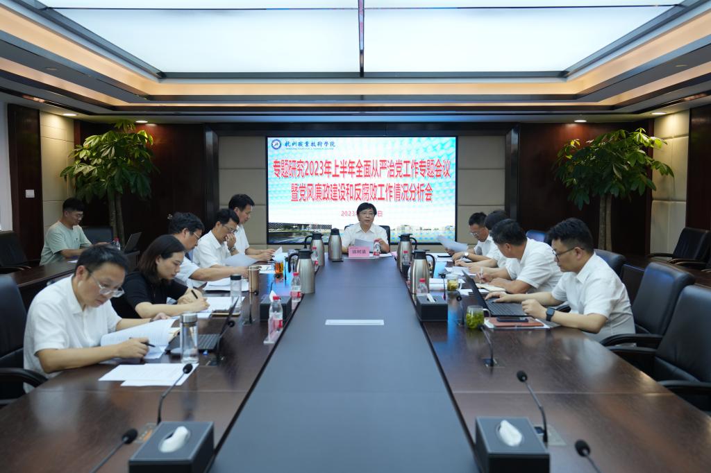 徐时清就纵深推进全面从党和党风廉政建设,为“双高”建设和“升本创大”夯实组织保障和政治保障提出三点要求:一是坚持做到履责尽职,进一步压紧压实管党治党责任;二是坚持聚焦主责主业,进一步强化监督防范化解风险;三是坚持抓好廉政教育,努力打造“清廉杭职”品牌;四是坚持锻造过硬作风,进一步构建风清气正政治生态。