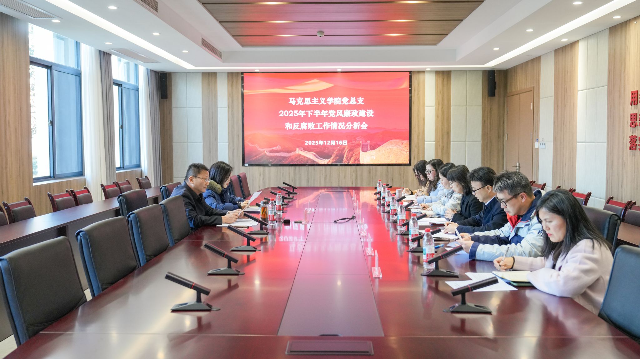 12月16日下午,马克思主义学院党总支在研习中心召开2025年下半年党风廉政建设和反腐败工作情况分析会。校党委书记陈文岳,校纪委委员、机关党委书记何霞红到会指导,马克思主义学院班子成员及相关教师参加会议。会议由马克思主义学院党总支书记、院长邹宏秋主持。