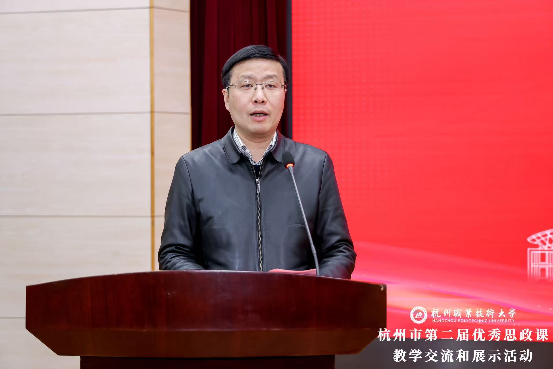 赖明诚指出,在全国上下深入学习贯彻党的二十届四中全会精神之际,本次活动恰逢其时、意义深远。他强调,活动聚焦“习近平文化思想在浙江的溯源与实践”融入思政课教学的创新探索,旨在促进不同学段、不同学校间的经验共享与观点碰撞,可谓“天时、地利、人和”兼备:“天时”在于紧扣习近平文化思想在浙江的溯源与实践主题,着力推动党的创新理论有机融入思政课教学;“地利”在于杭职大作为一所新揭牌的大学,正努力朝着高水平职业技术大学目标迈进,专业对接产业紧密,育人成果丰硕;“人和”在于参会代表涵盖宣传、教育管理部门和各学段思政教师,大家通过交流互鉴,有力助推全市大中小思政一体化建设取得新成效。